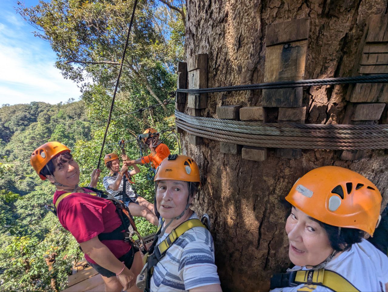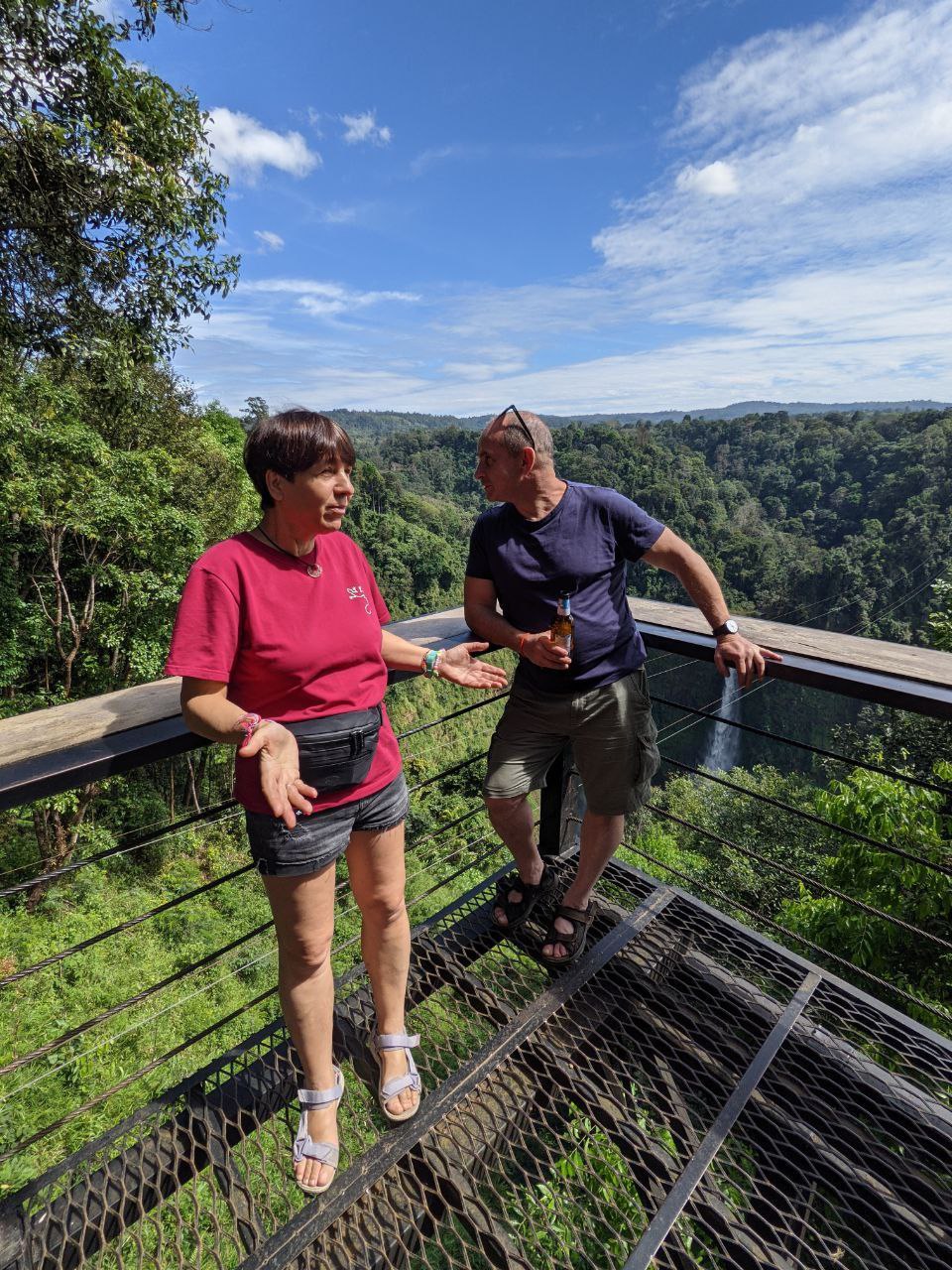 Водопад Тад Юанг метров 70. И за ним где летали на зиплайне метров 100. Симпатично.Самогон из кокоса или брага)