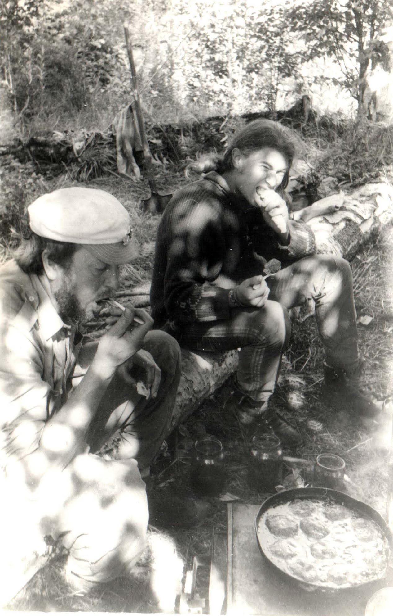 Это он в той же киреунской партии в 1991 году. Через год после нашего поля на Двуюрточном. С Серегой Шиловым котлеты жарит на костре. А фото Серега и прислал. На юбилей мне.