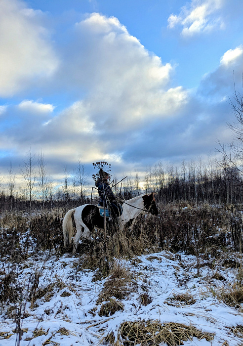 Мы с каюркой первые на этоой тропе после первого снегопада. В основном идем шагом. Снежные арки перекрывают путь. Чудо какое этот лес. На девственно заснеженной тропе следы зайцев и косуль. Тихо. Редкий скрип дерева, да шепот ветра. Всадники включаются в любимую игру, увернуться от нависших пушистых шапок и проскользнуть между ветками, оставив удовольствие холодных хлопьев за шиворот идущему сзади. Весело, хотя получается не у всех 👀